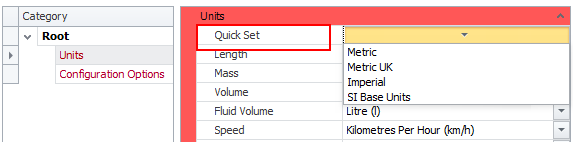 Use the Quick Set drop-down to select Metric or Imperial units of measurement.