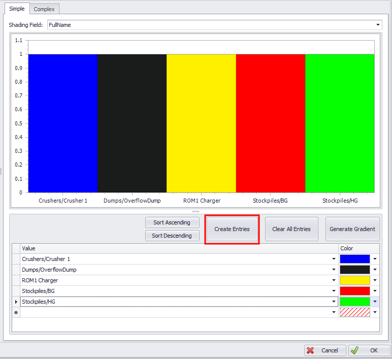 Click Create Entries to auto populate the list. Only available for Text fields.