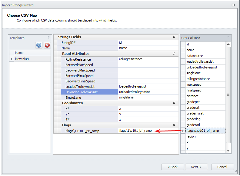 In the Import Strings Wizard window select a CSV file which represents the haul network.