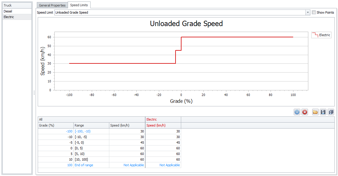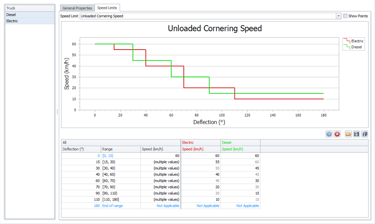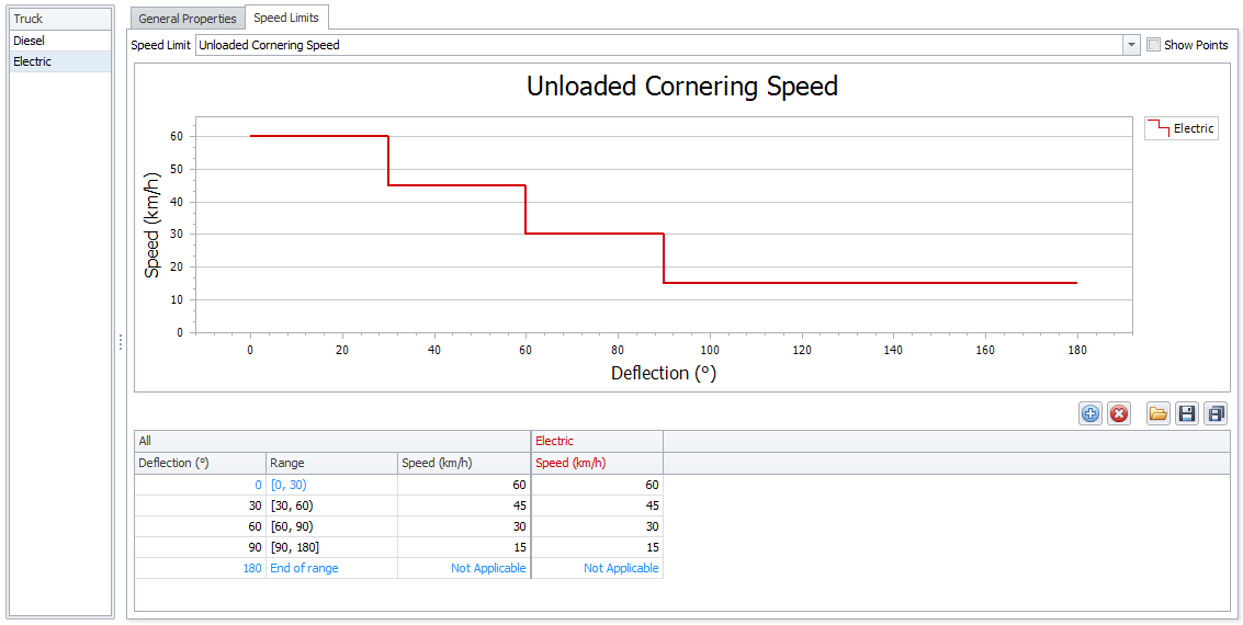 Toggle the Show Points check box to display points on the speed limits curves: