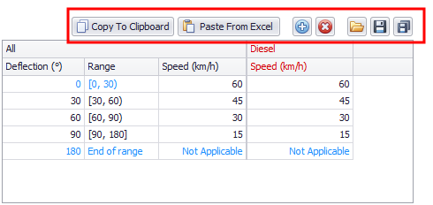 Speed Limit Ranges can be updated manually by adding/removing rows and typing in the desired values.