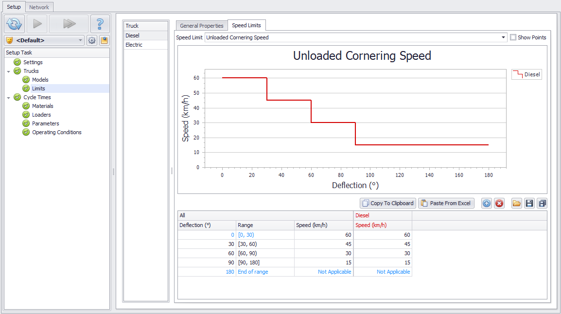 In the Truck Limits step, set the safe operating limits by truck type.