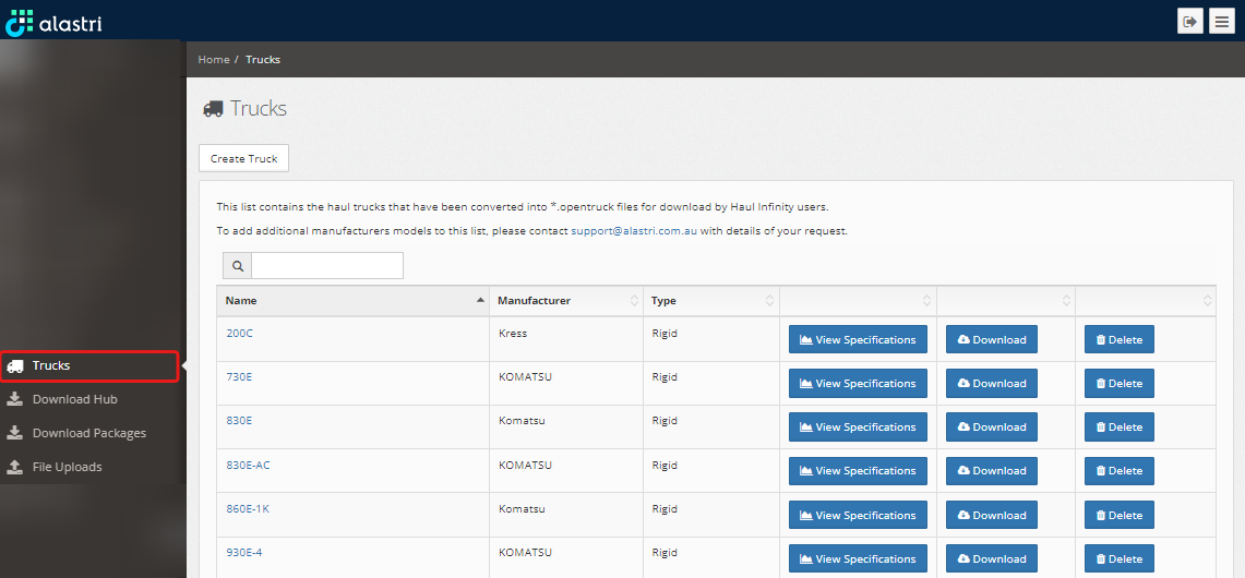 If you have a truck that is not in the list, please let us know (contact alastrisupport@micromine.com).