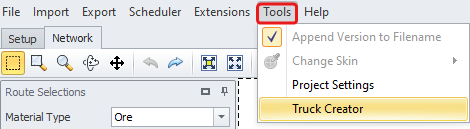 You can also digitise the required trucks yourself, using the Truck Creator functionality, provided in the Tools drop-down.