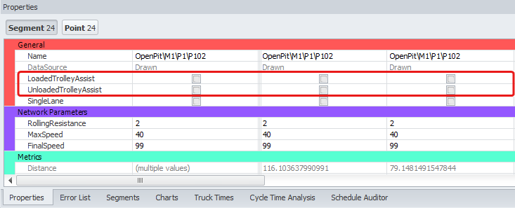 Trolley Assist provides an (optional) secondary rimpull curve, which is used when trucks cross traverse a Trolley Assisted segment.