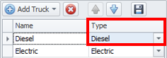 Truck power type can be selected using the drop down menu next to the truck name. This will update general inputs and data curves.