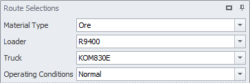 The Route Selections panel is used to select the parameters required for calculating cycle times.