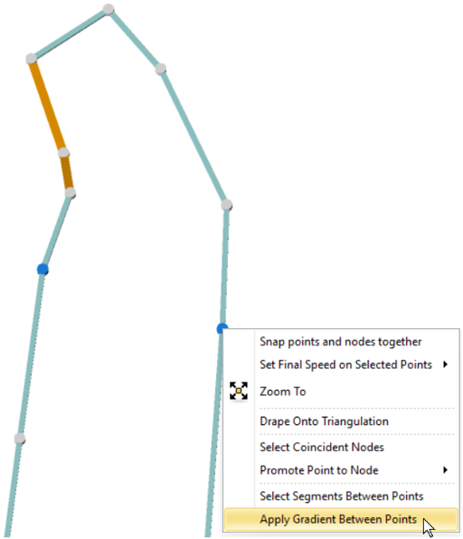 Set the relevant gradient for all segments between the two points: