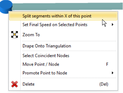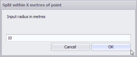 In the Split within X metres of point window enter a distance in metres, such as 10.