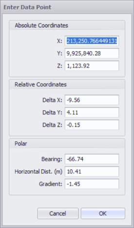 The coordinate menu will open with the coordinates of the clicked point.