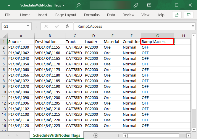 Open ScheduleWithNodes.csv.