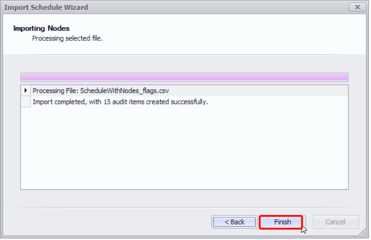 Network > Schedule Auditor tab > Import Schedule button