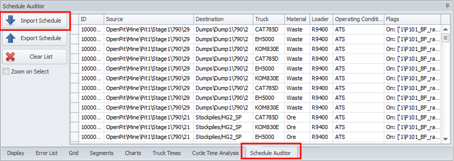 Go to the Schedule Auditor tab at the bottom of the screen and click the Import Schedule button.