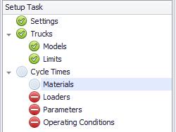 When setting up a project for the first time, all setup tasks need to be performed in the specified sequence. You cannot proceed to the red marked step without confirming the previous one. During the subsequent work with the configured project, you can return to any of the steps, but after making changes you will need to rerun all the tasks below in the list. This is because changes you make in a single step can affect settings in related tasks and need to be reviewed or adjusted.