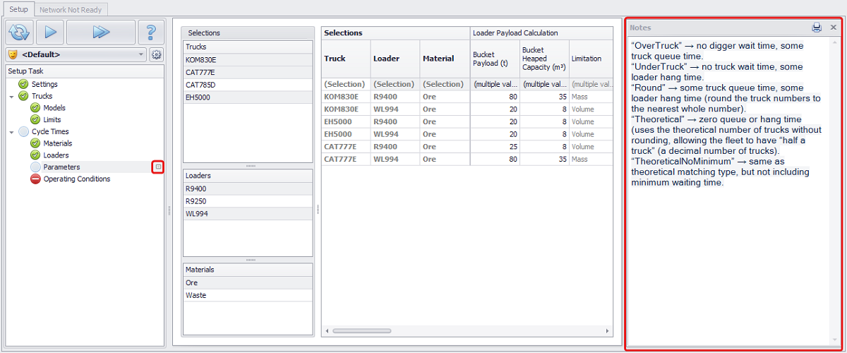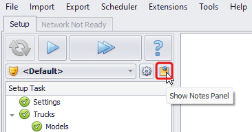 When you click this button, the Notes panel appears on the right side of the screen, where you can write notes for each setup step.