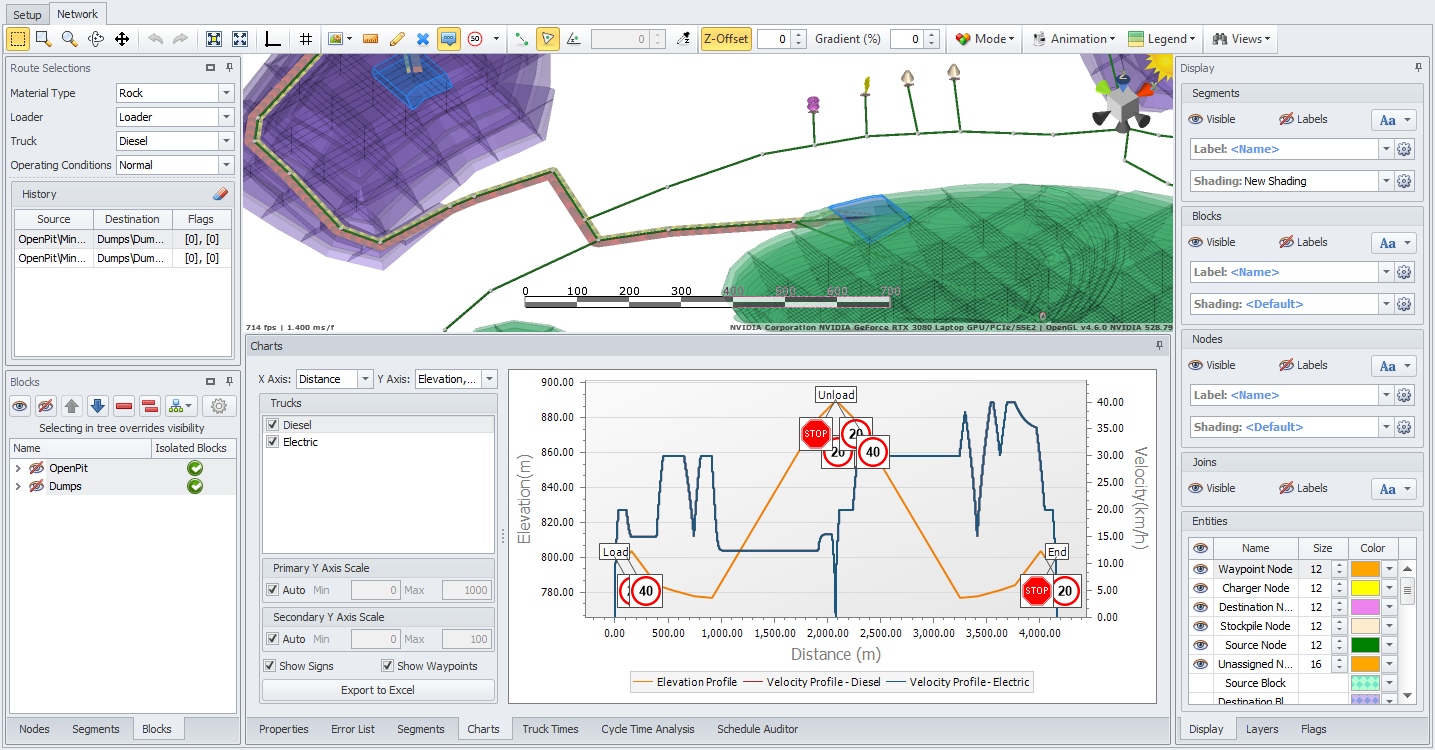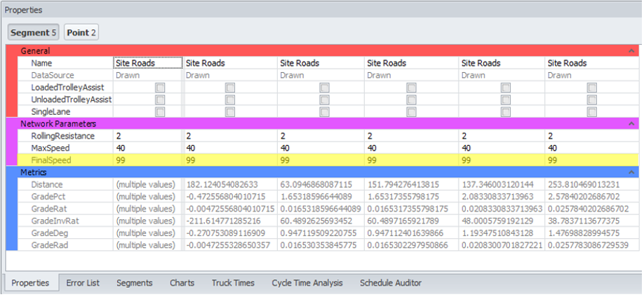 Double click the road of interest (example, entry road to the Stockpiles/Crusher, in pit roads, dump ramp).