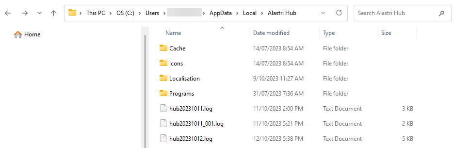If you are contacting Alastri support not via the Request Support button from the Hub, please attach the Hub log file, that can be found in C:\Users\username\AppData\Local\Alastri Hub.