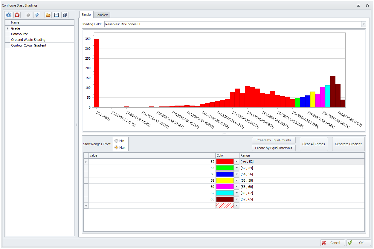 Drop down the Shading Field and select “Reserves: DryTonnes.FE”.