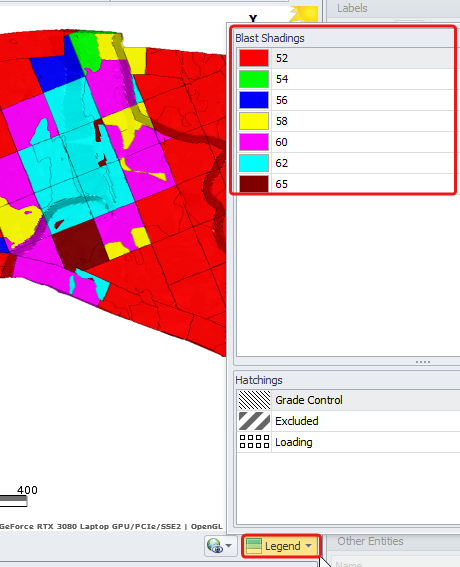 Colors assigned for block shading can be seen in the Legend (bottom right, below the viewport).