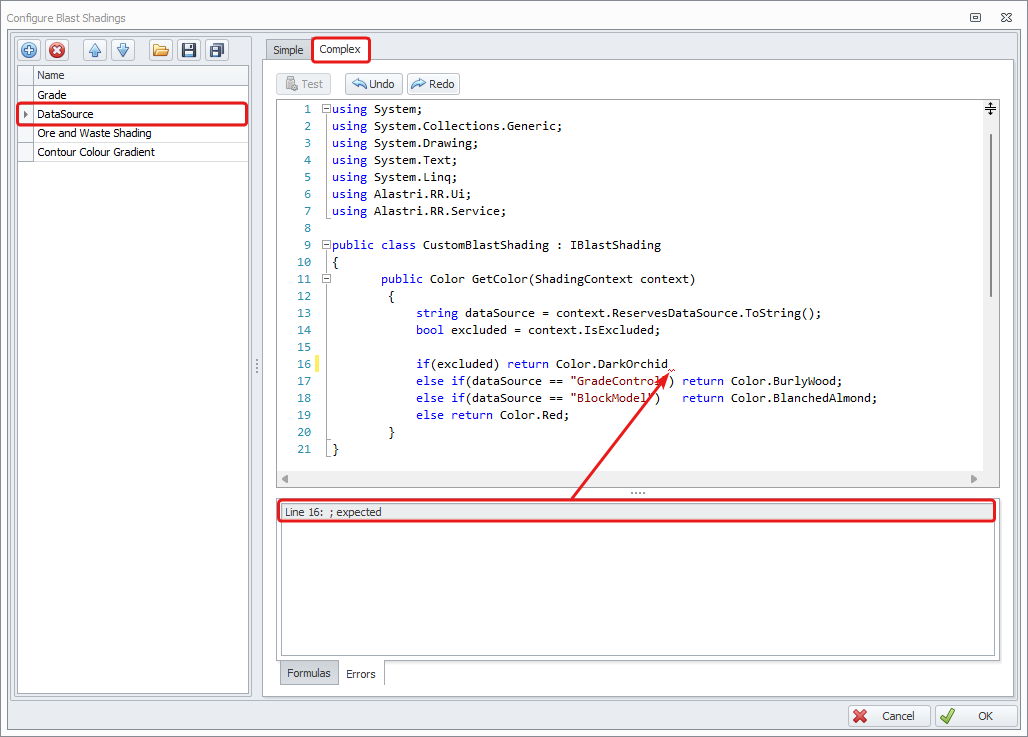 Click the Complex tab to open the code editor.