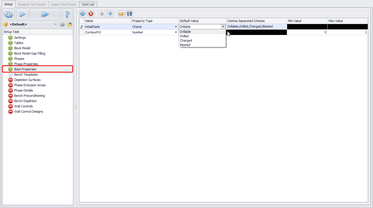 Blast Properties step can be used to assign a tag or a value to a blast solid for use in schedule software downstream.