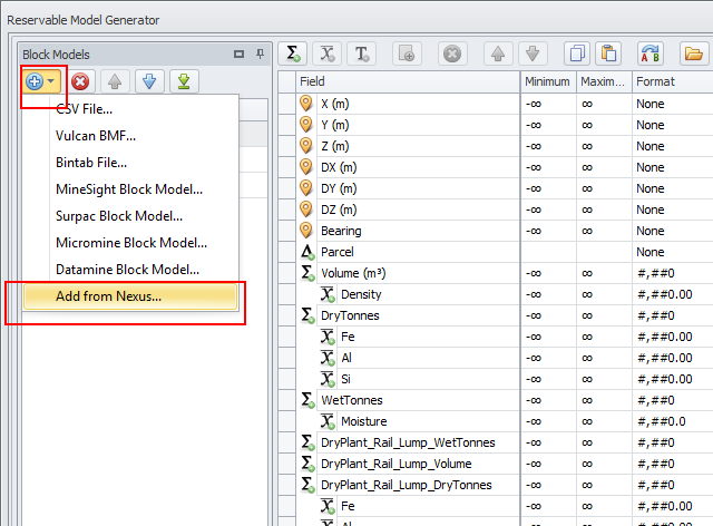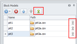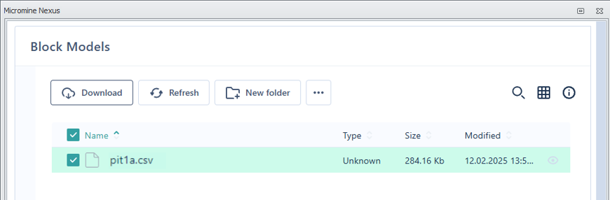 In the Block Models panel, different colours are used in the file path to indicate the differences between the locally-stored block models and those stored on Nexus.