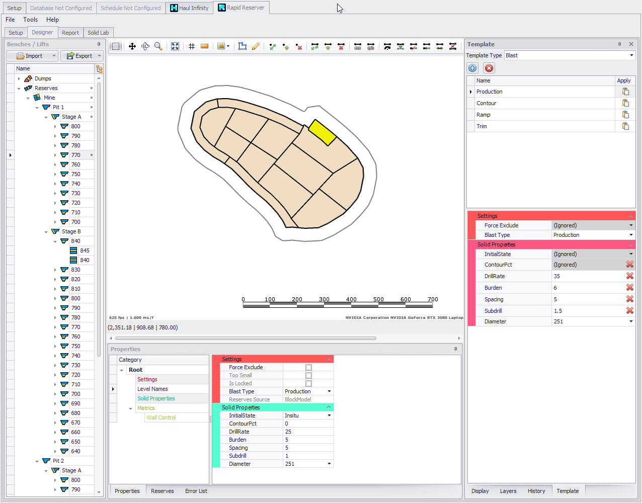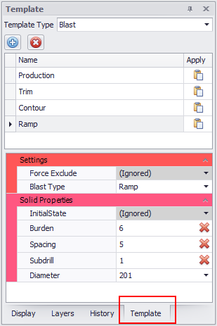 Templates allow users to quickly assign Blast and Dig properties to objects in the Viewport.