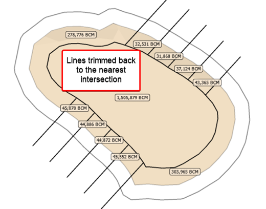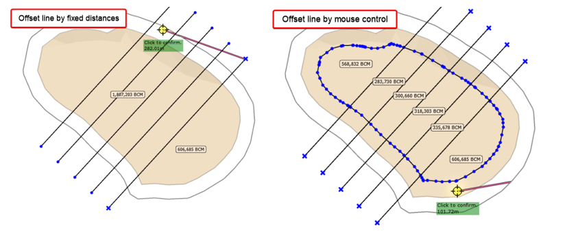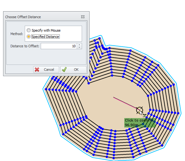 Select a line to offset (this may include the bench boundary polygon as shown on the right).