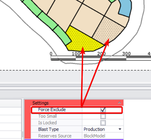 Excluded blocks will be hatched according to the Hatch pattern set in the Setup > Setting.