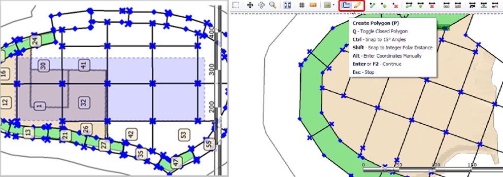 Use the top toolbar buttons to manually draw, move, join, and delete points and construction lines. |