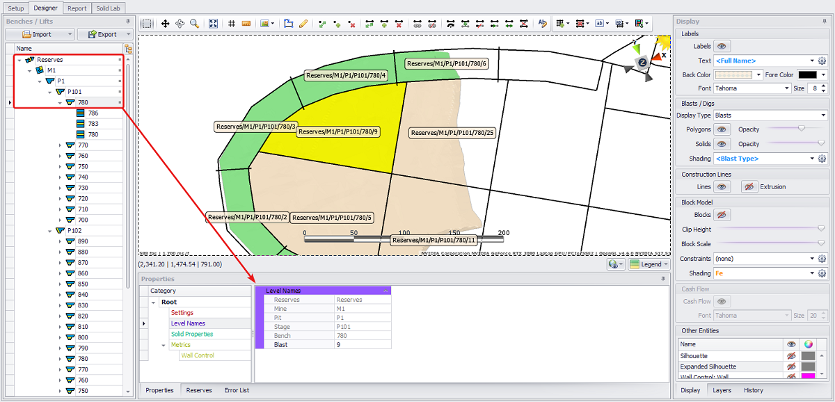 Click on a level to display it in the Viewport. You can also display the whole Reserve/Mine/Pit/Stage/Bench or selected solids using <CTRL> and <Shift> hotkeys.