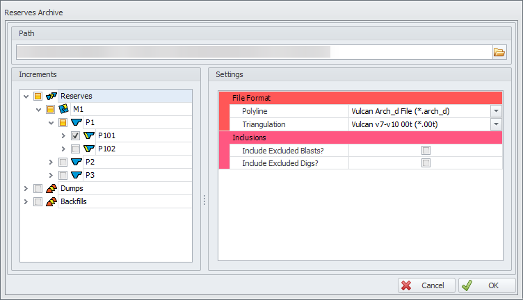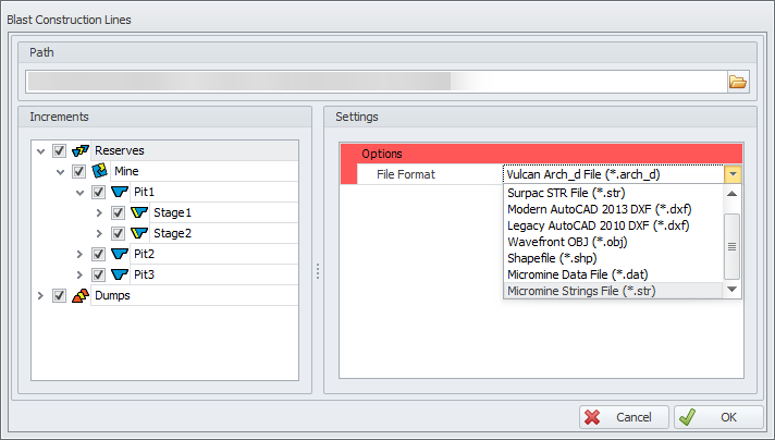 Note that this option is available if only one increment is selected from the tree. If multiple benches, or the whole pit is selected, you’ll only see From Project exporting options, described in the sections below.