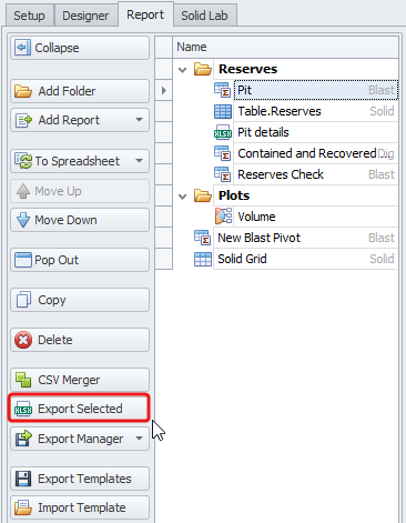 Select report(s) you wish to export.
