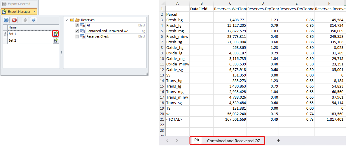 Press Export Manager button to create a new export set for your report.