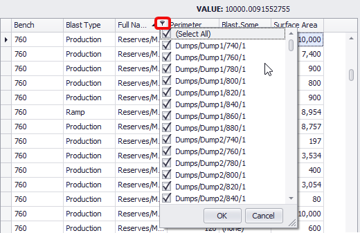 For any columns the filter icon is available, allowing you to filter the fields displayed by the required parameters.