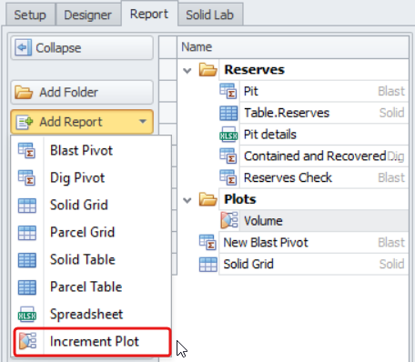 Note that an Increment Plots folder is added to your reports list by default.