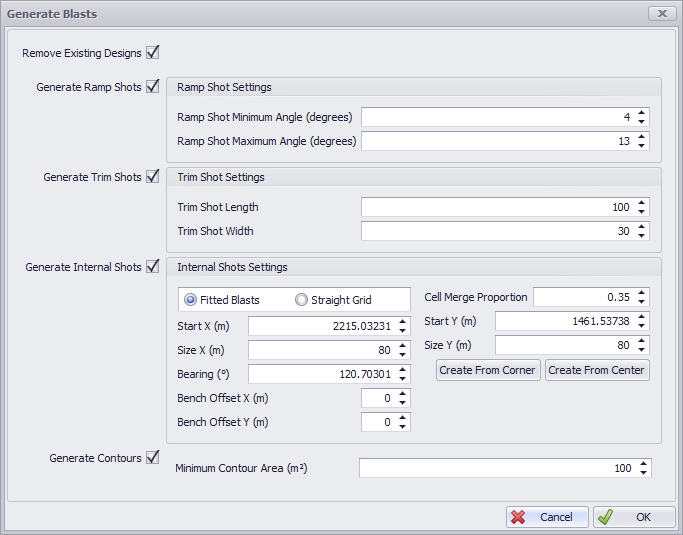 User specified values in Phases/Blast/Dig Properties setup steps |