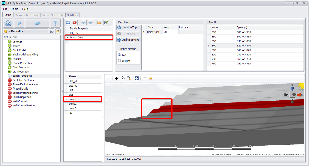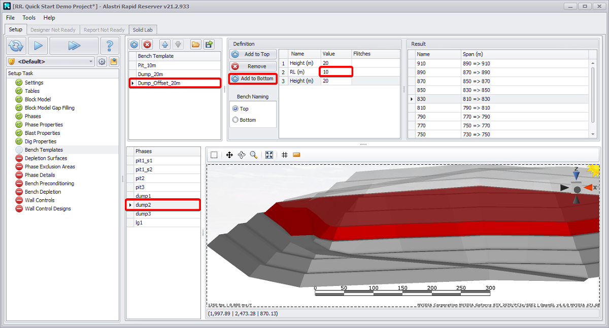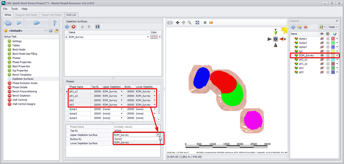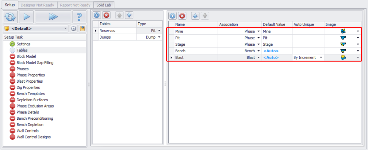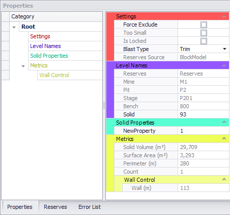 If extra properties (that are not mapped across in the Reserves Model) are required for later scheduling purposes they can be added here under the relevant step (Phase Properties, Blast Properties, Dig Properties ).