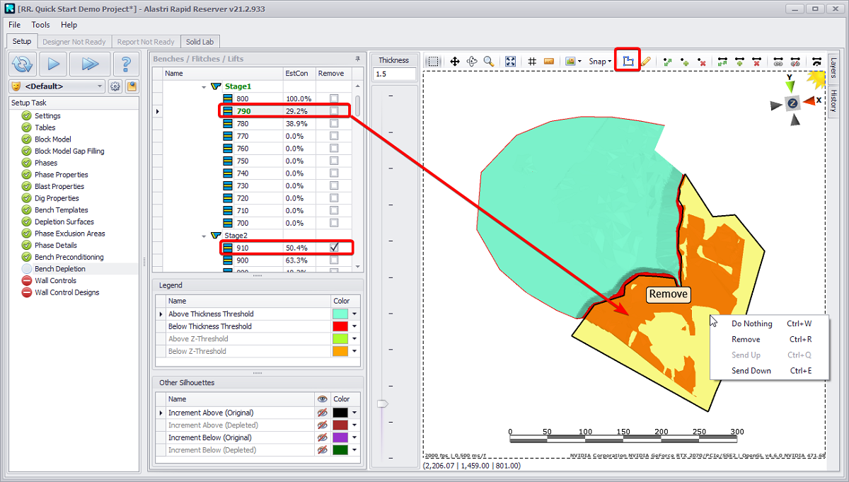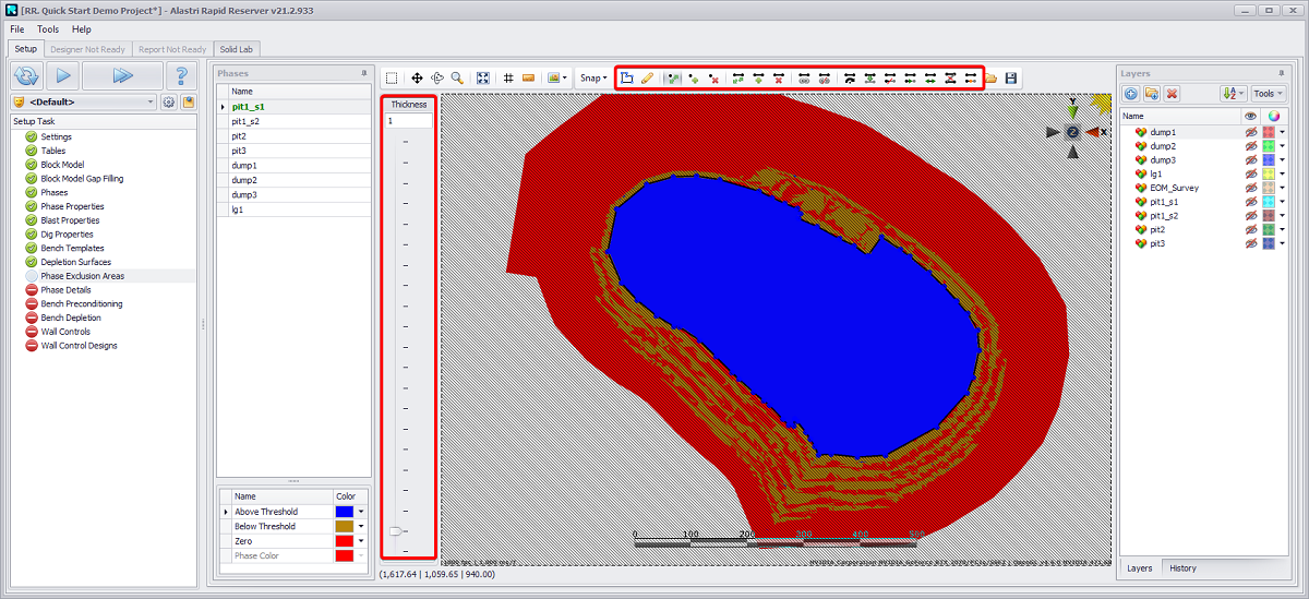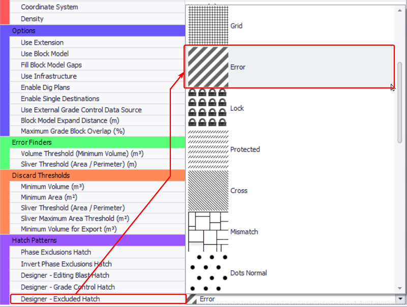 In the Hatch Patterns area, select a pattern from the drop-down list to highlight different areas for phase exclusion, blasts, or grade control.