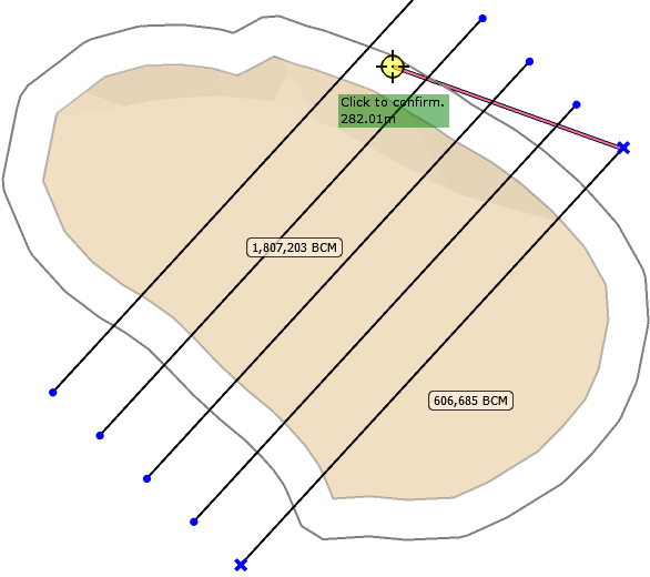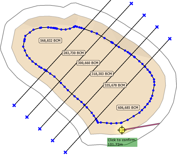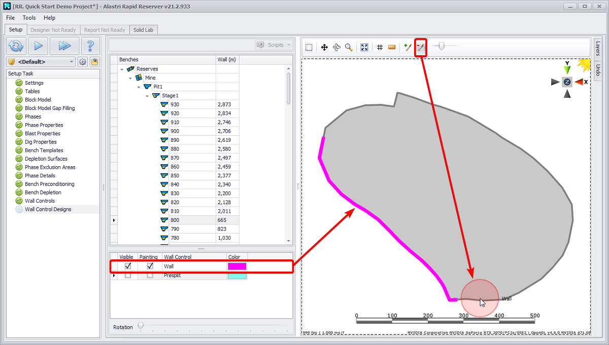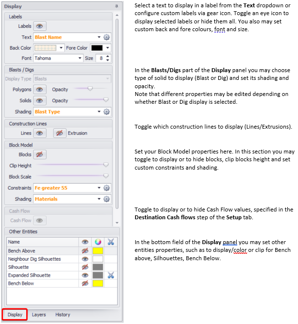 Benches are divided into blasts by drawn construction lines. By pressing eyeball toggle you can: