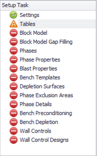 Depending on which options are ticked in the Options section, different steps appear in the Setup Tasks list. In the current project, will need the Block Model and the Block Model Gap Filling features.