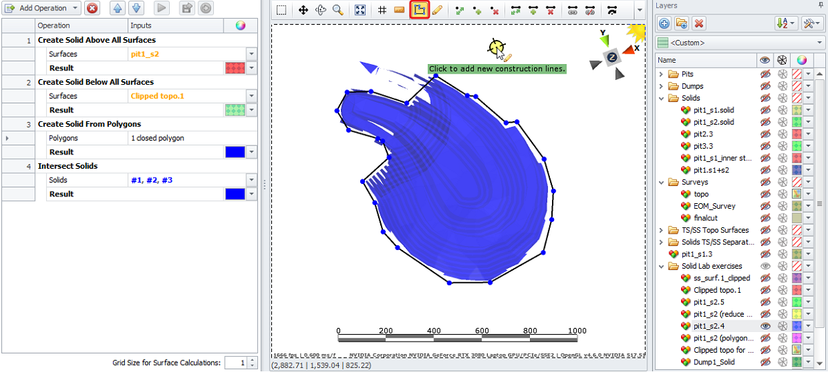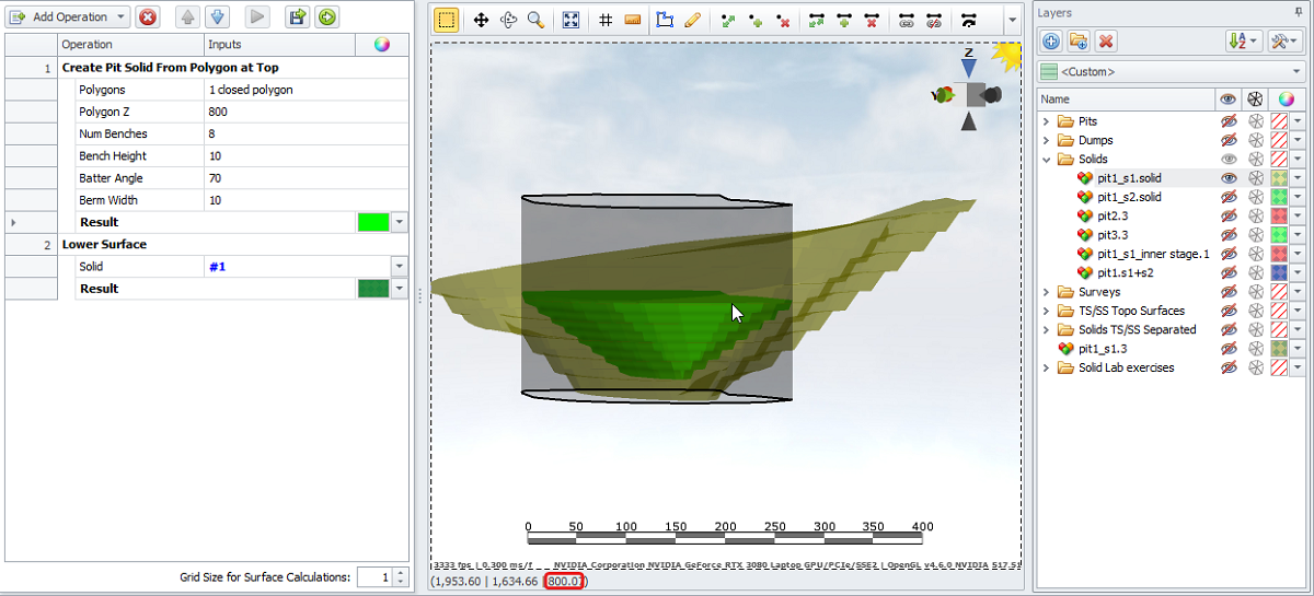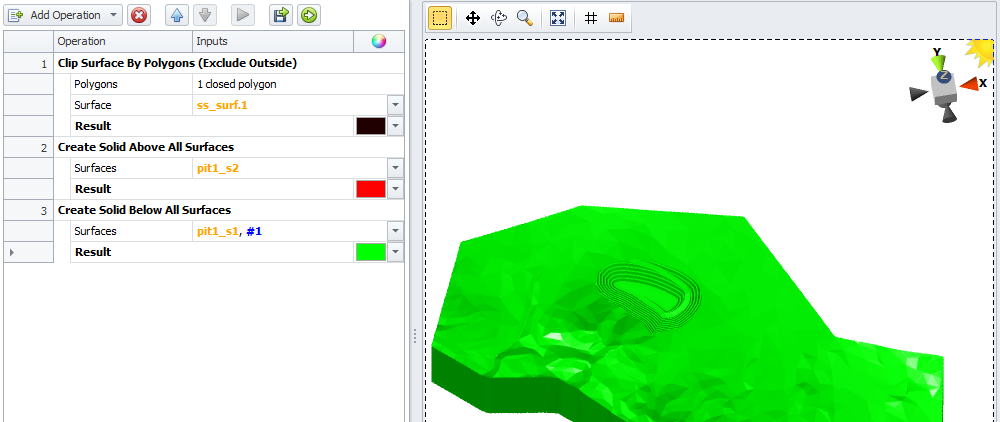 Below is an example of generating a backfill stage solid, which can come in handy when a certain part of the pit is fully mined and can be backfilled with a waste material.