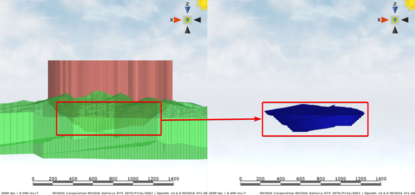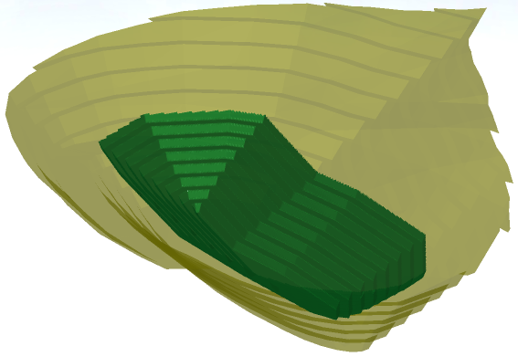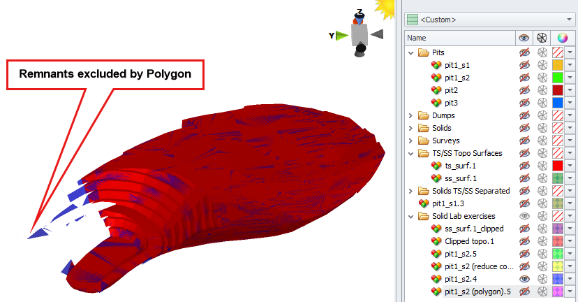 If all steps are done correctly, you should get a result like on the right. Display the Pit1_Stage1 solid to see where the generated backfilling area is located.