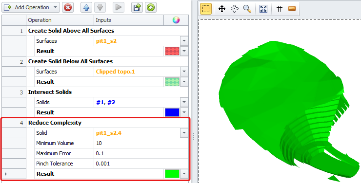 Using the up and down arrows, place the Create Solid From Polygons operation in front of Intersect Solids operation.