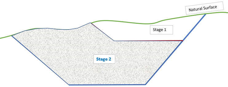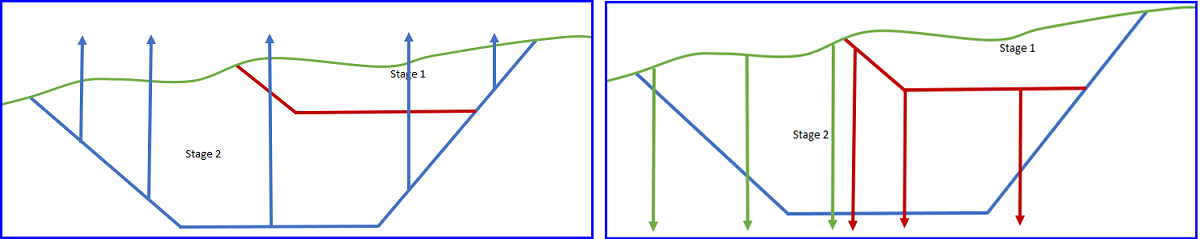 All material above Stage 2 design (left) and Excluding all material below Stage 1 and the natural Surface (right)
