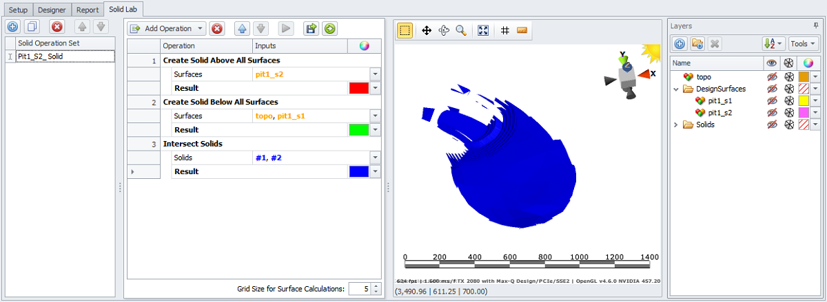 Create a solid below the Pit1_Stage1 design and the natural surface file.