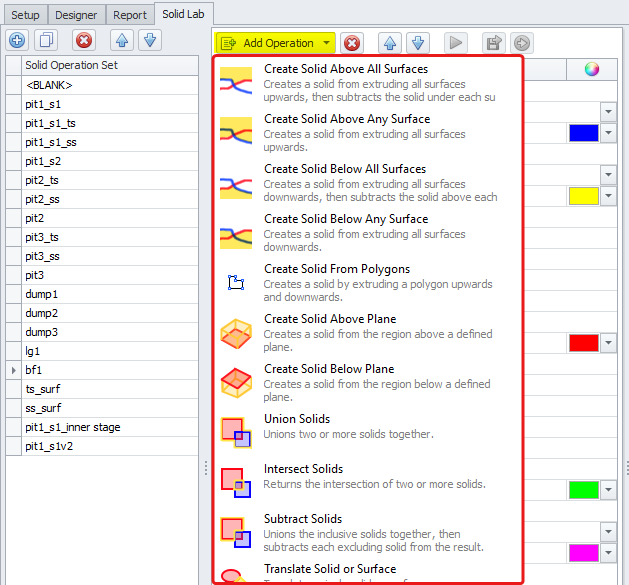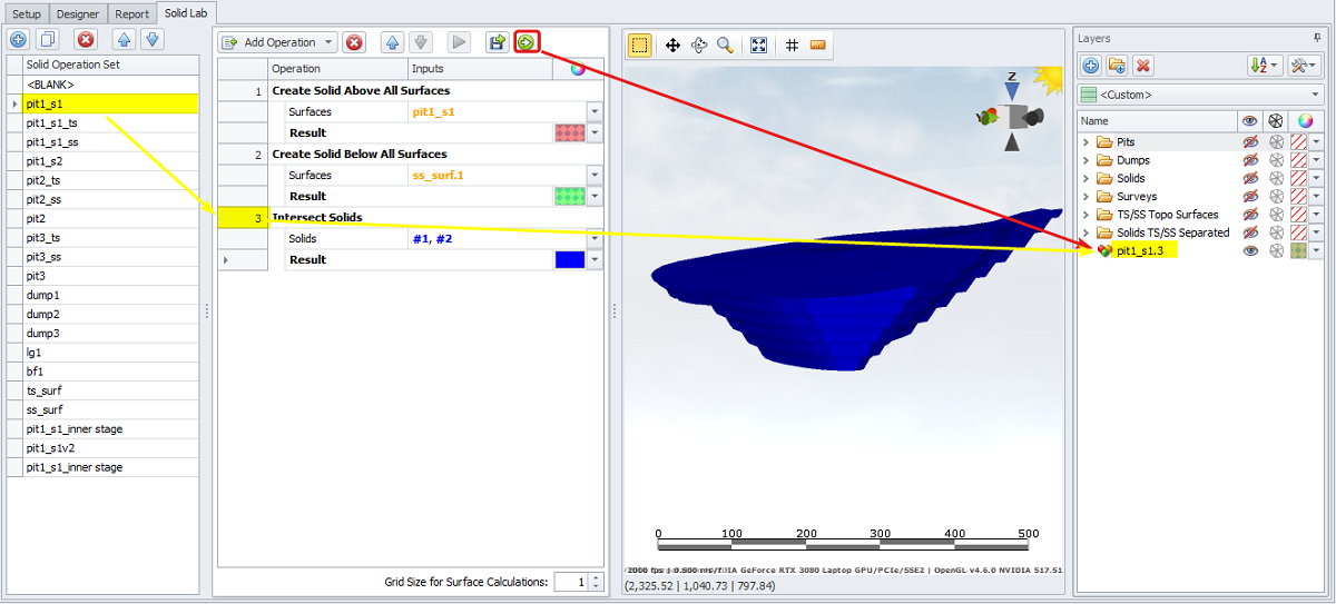 Save the result of the selected operation to the Layers panel. The result will be saved as Solid Operation Set name + Number of the Operation, ie. “pit1_s1.3”, “pit3_ss.4“ etc. |