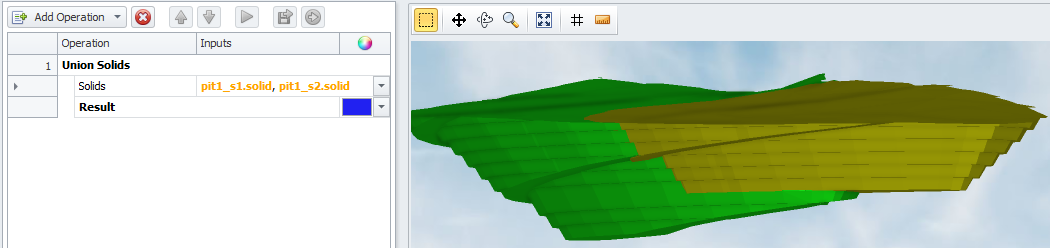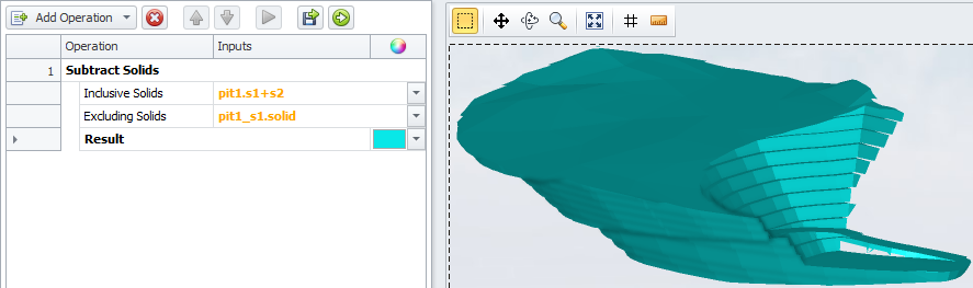 This operation is used for a pit containing 2 phases, to create a solid phase of Stage 2 excluding Stage 1.