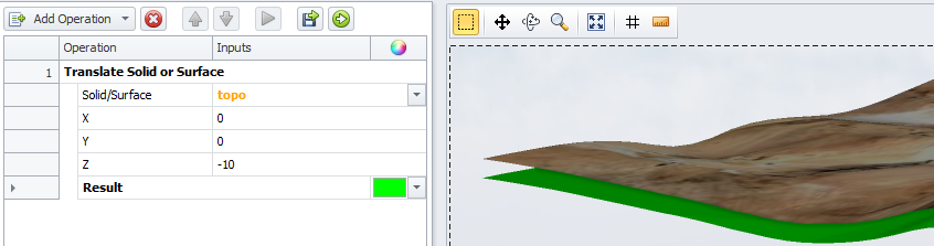 Type in an X, Y, Z value to define the translation. Existing triangulated surface is translated to the new location. |