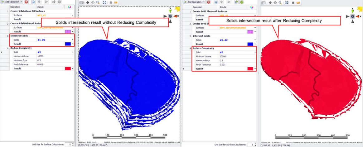 At the bottom of the Operations panel is an option to select the Grid Size for Surface Calculations. By default, it’s set to 5 to ensure faster results calculation. Set it to 1 to generate smoother surfaces, but keep in mind that the smaller the grid size, the more time it takes to generate the resulting surfaces and solids.